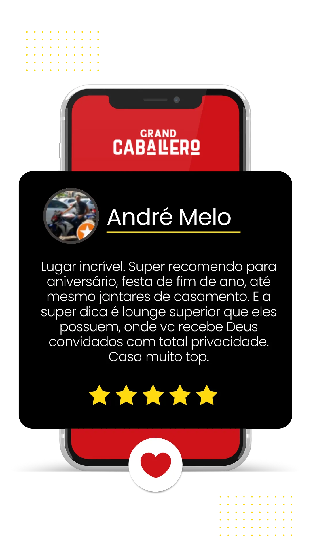 O Grand Caballero é o espaço perfeito para celebrar momentos especiais. Aniversários, confraternizações, eventos corporativos ou comemorações exclusivas ganham um novo nível em um ambiente sofisticado, com gastronomia de qualidade, atendimento diferenciado e atrações que tornam cada experiência única.